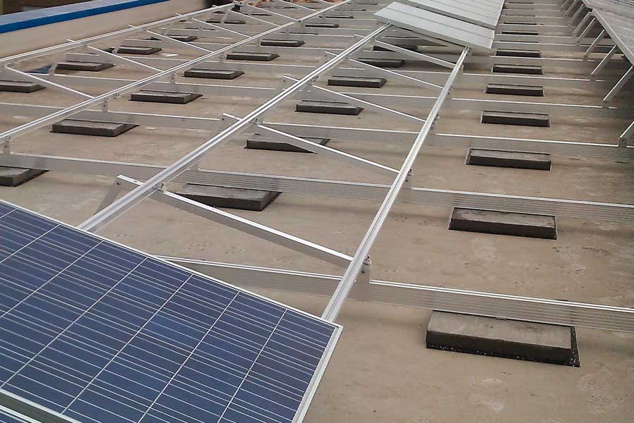 This project was realized using roof-penetrating fasteners. To reduce the number of mounting points, large-span profiles were used to construct the mounting table.