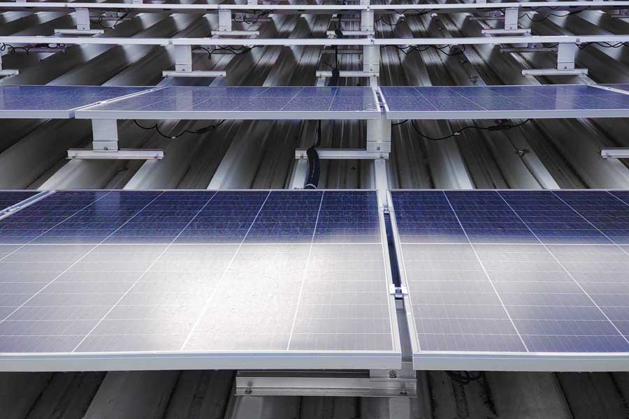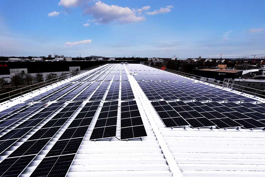 P-30 or P-mini profile sections are attached to the trapezoidal sheeting, forming a stable base for the supports. In this example, the P-30 profiles allow for flexible adjustment. Coordinating the trapezoidal sheeting and module dimensions is significantly simplified.