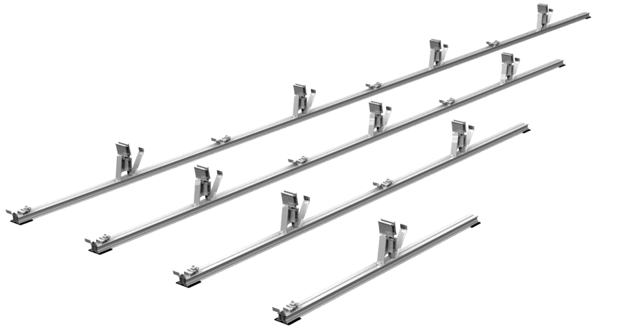 For flat roofs up to 5° tilt, that allow no roof penetration and only small extra load on the roof. The aerodynamic optimization prevents the PV system from sliping and blowing away.