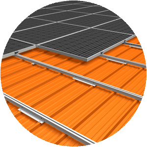 In dependence of the bearing capacitiy of the trapezoidal, corrugated, standing seam or sandwich roof the matching DICONAL® PV - mounting system can be used. werden. Short track P-30 oder sliding support GH.