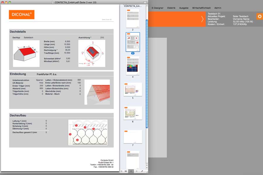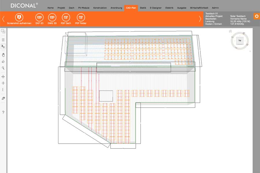 The application can be used without training. From roof design to the finished plan the user needs about 10 minutes with the DICONAL® Planning tool.