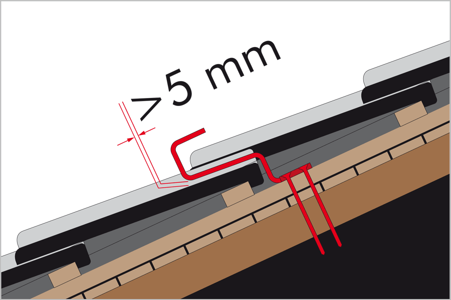 Pantile covering - Important: There must be a clearance space between the roof tiles and hooks of at least 5mm.