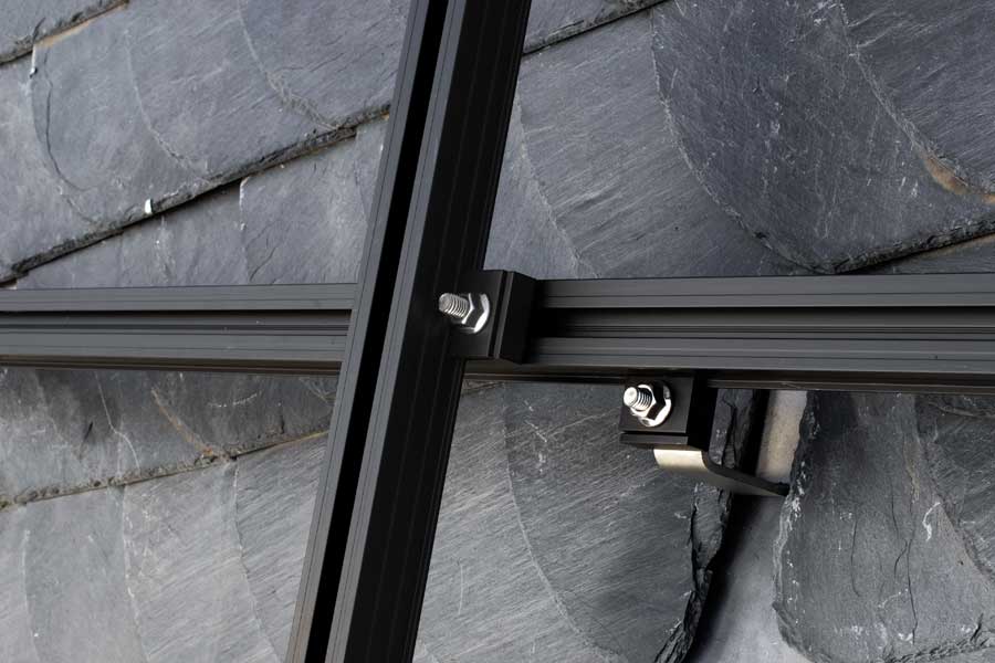 To match black slate roofs and/or black module frames, we also supply black support profiles and module clamps from stock.