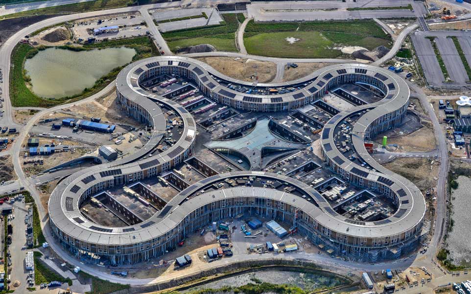 DICONAL® FA-PV / die individuelle P-40 Profilebene ermöglicht eine Anpassung der Solarmodule an das schlangelinienförmige Dach des New North Zealand Hospital Hillerød, Denmark.